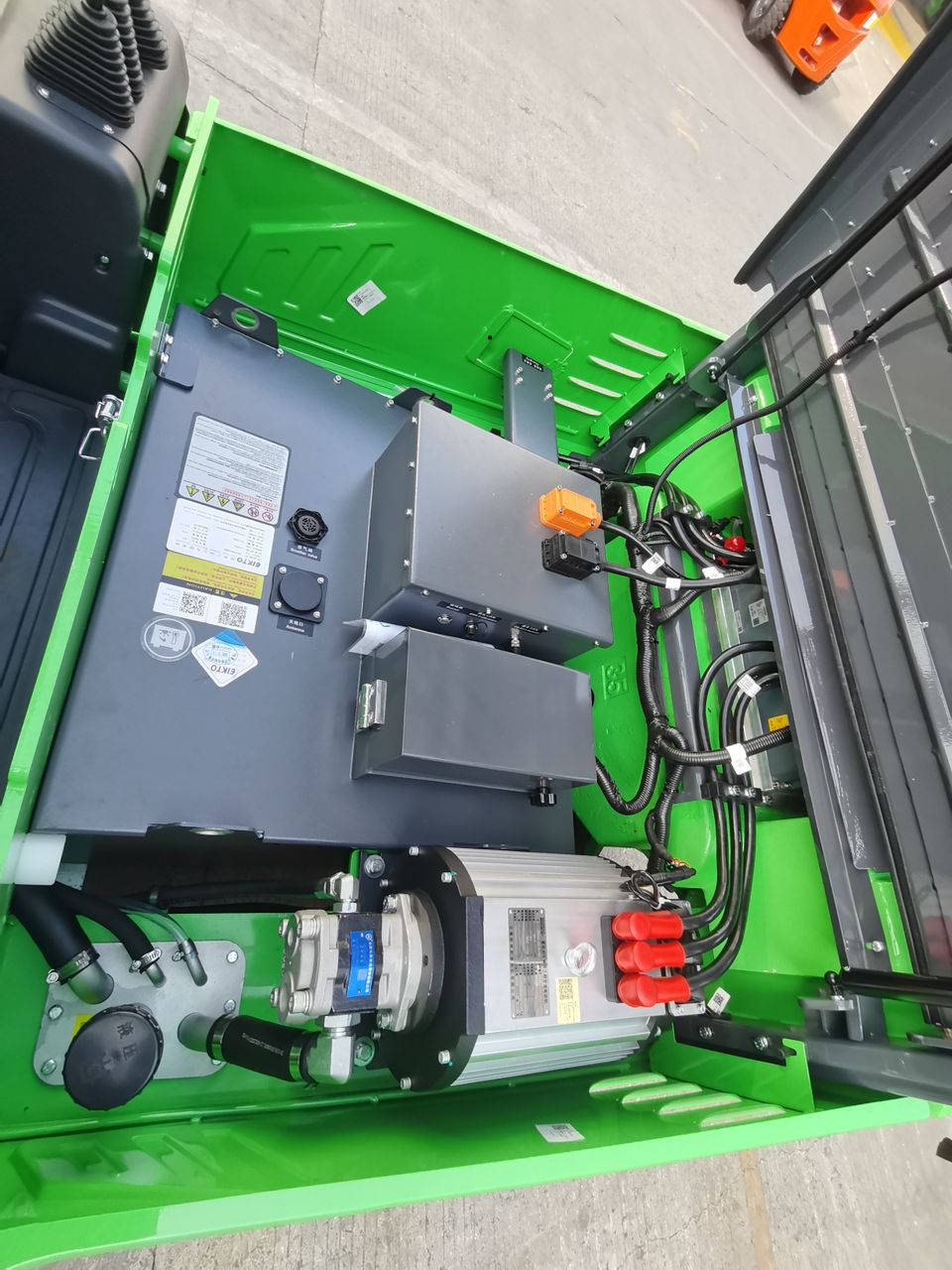 280Ah/80 Volt lithium battery with ultra fast charger, approximately 6 hours of run time and 2 hours charge time